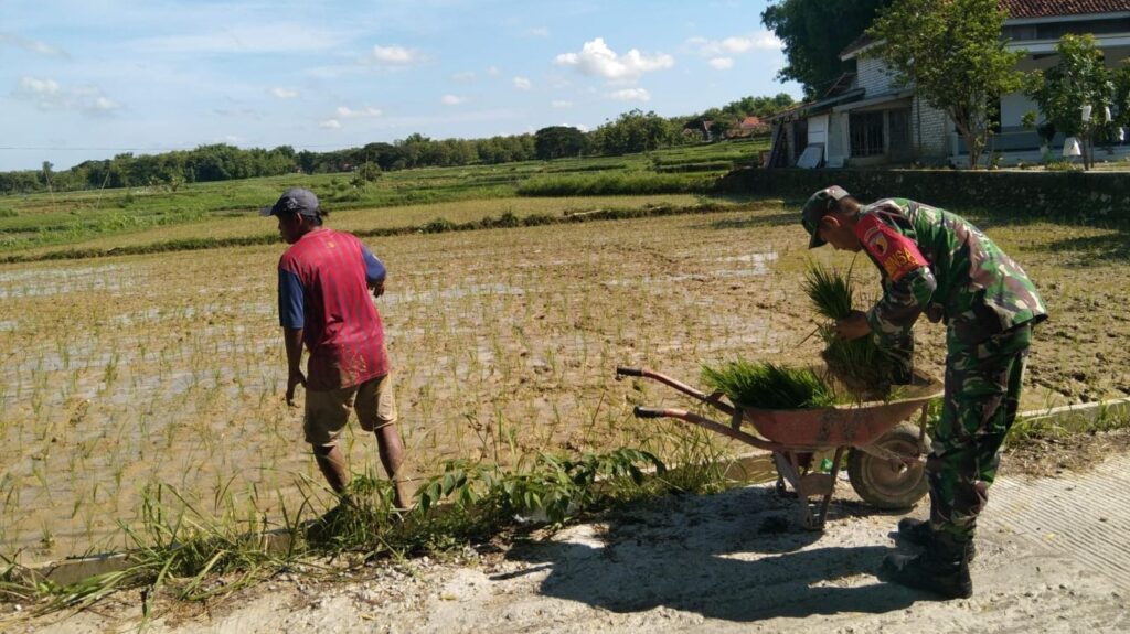 Babinsa Koramil 0828/12 Robatal Bantu Petani Angkut Bibit Padi di Desa Bapelle
