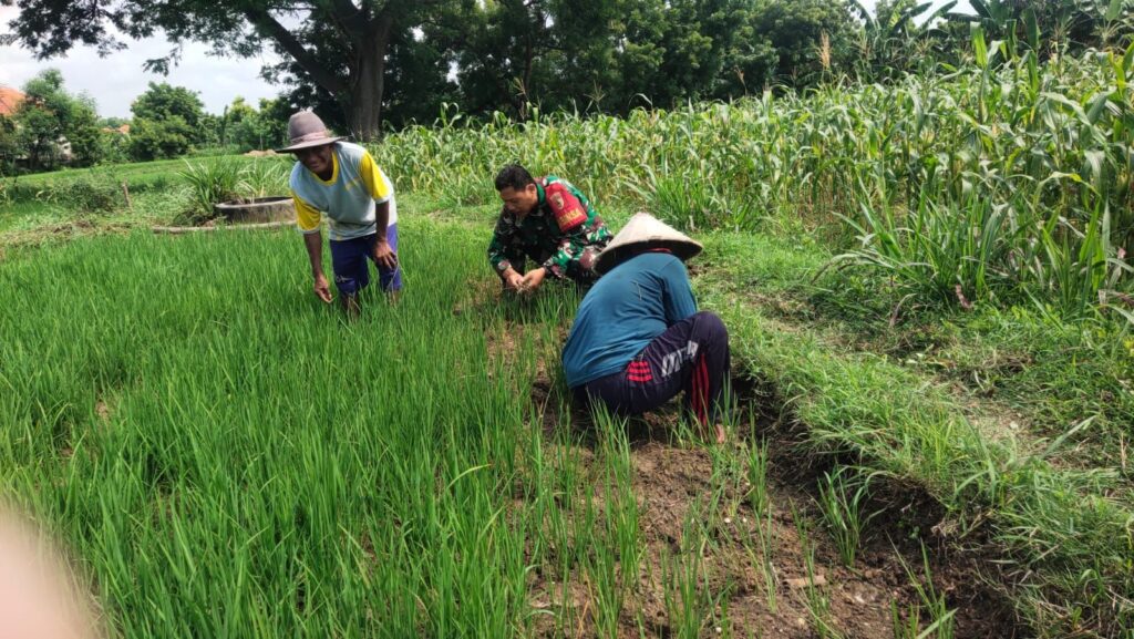 Sampang – Babinsa Pos Ramil 0828/13 Pangarengan, Serka Lery Ismanto, melaksanakan kegiatan pendampingan kepada para petani dengan membantu membersihkan gulma atau tumbuhan liar yang berpotensi menurunkan kualitas tanaman padi, bertempat di Dusun Pranggesan, Desa Panyirangan, Kecamatan Pangarengan, Kabupaten Sampang.(3/1/26) Kegiatan ini merupakan bagian dari upaya Babinsa dalam mendukung ketahanan pangan wilayah serta mempererat kemanunggalan TNI dengan rakyat. Gulma yang tumbuh di area persawahan dapat menghambat pertumbuhan padi karena menyerap unsur hara dan air yang seharusnya digunakan oleh tanaman utama.