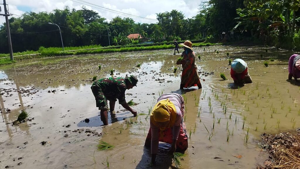 Sampang – Dalam rangka mendukung program ketahanan pangan nasional, Babinsa Koramil 0828/03 Omben Serka Nanang Novi turut serta membantu proses penanaman padi bersama para petani di Desa Kebun Sareh, Kecamatan Omben, Kabupaten Sampang, pada hari ini.(18/1/26) Kegiatan tersebut merupakan bentuk nyata kepedulian TNI AD melalui peran Babinsa dalam mendampingi masyarakat desa, khususnya para petani, guna meningkatkan produktivitas pertanian dan menjaga stabilitas pangan di wilayah binaan.