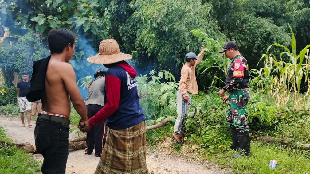 Gotong Royong Menyatu dalam Karya Bakti, Babinsa dan Warga Pacangga’an Bersihkan Jalan Desa