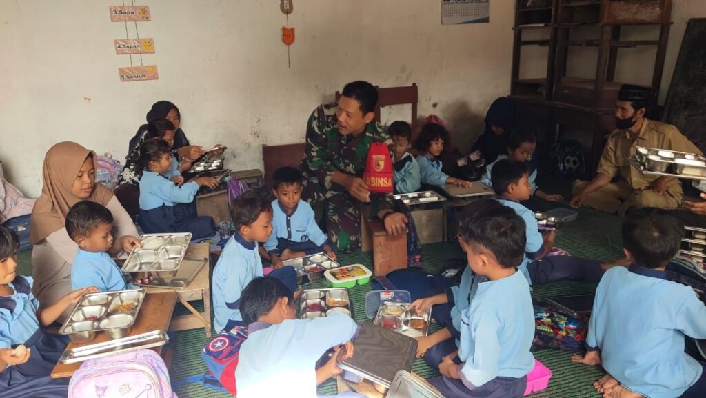 Sampang – Dalam rangka mendukung program pemerintah di bidang peningkatan gizi anak usia dini, Babinsa Pos Ramil 0828/13 Pangarengan, Serka Lery Ismanto, melaksanakan kegiatan pendampingan Makan Bergizi Gratis (MBG) di Sekolah PAUD Al Irsyad, Dusun Gubbu Barat, Desa Ragung, Kecamatan Pangarengan, Kabupaten Sampang, pada hari ini.(23/1/26) Kegiatan tersebut dilaksanakan bersama para wali murid dan tenaga pendidik PAUD sebagai bentuk kepedulian terhadap pemenuhan gizi seimbang bagi anak-anak sejak usia dini. Pendampingan ini bertujuan memastikan penyaluran makanan bergizi berjalan tertib, aman, dan tepat sasaran.