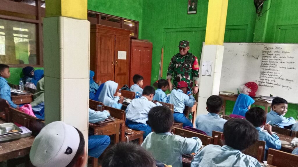 Sampang – Babinsa Koramil 0828/03 Omben, Koptu Kusmulyadi, melaksanakan kegiatan pendampingan penyaluran Makan Bergizi Gratis (MBG) di salah satu sekolah yang berada di Desa Madulang, Kecamatan Omben, Kabupaten Sampang, pada hari ini. Kegiatan pendampingan ini bertujuan untuk memastikan penyaluran program MBG berjalan dengan aman, tertib, dan tepat sasaran, serta memberikan manfaat maksimal bagi para siswa sebagai generasi penerus bangsa. Kehadiran Babinsa di tengah kegiatan tersebut juga merupakan wujud nyata dukungan TNI AD terhadap program pemerintah dalam meningkatkan kesehatan dan pemenuhan gizi anak usia sekolah.