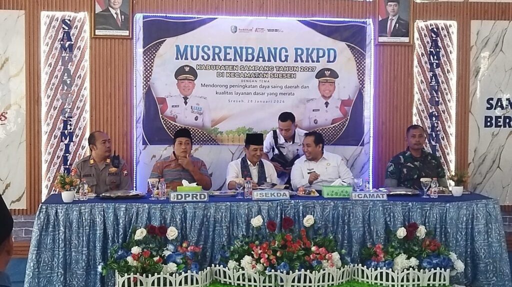 Sreseh – Babinsa Koramil 0828/05 Sreseh, Serda Ach. Nadhim, menghadiri kegiatan Musyawarah Perencanaan Pembangunan (Musrenbang) Tingkat Kecamatan Sreseh yang diselenggarakan di Pendopo Kecamatan Sreseh, Kabupaten Sampang. Kegiatan Musrenbang tersebut dihadiri oleh Sekretaris Daerah Kabupaten Sampang, unsur Forkopimcam Kecamatan Sreseh, kepala desa se-Kecamatan Sreseh, tokoh masyarakat, serta perwakilan dari berbagai instansi terkait.