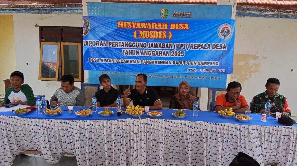 Pangarengan – Babinsa Posramil 0828/13 Pangarengan, Serka Halik, bersama unsur Forkopincam Pangarengan menghadiri kegiatan Musyawarah Desa (Musdes) Laporan Pertanggungjawaban (LPJ) Kepala Desa Apaan Tahun Anggaran 2025, yang dilaksanakan di Balai Desa Apaan, Kecamatan Pangarengan, Kabupaten Sampang. Kegiatan Musdes tersebut diselenggarakan sebagai bentuk transparansi dan akuntabilitas pemerintah desa kepada masyarakat terkait pelaksanaan program dan penggunaan anggaran desa selama Tahun Anggaran 2025. Acara dihadiri oleh Kepala Desa Apaan beserta perangkat desa, BPD, tokoh masyarakat, tokoh agama, serta perwakilan lembaga desa lainnya.