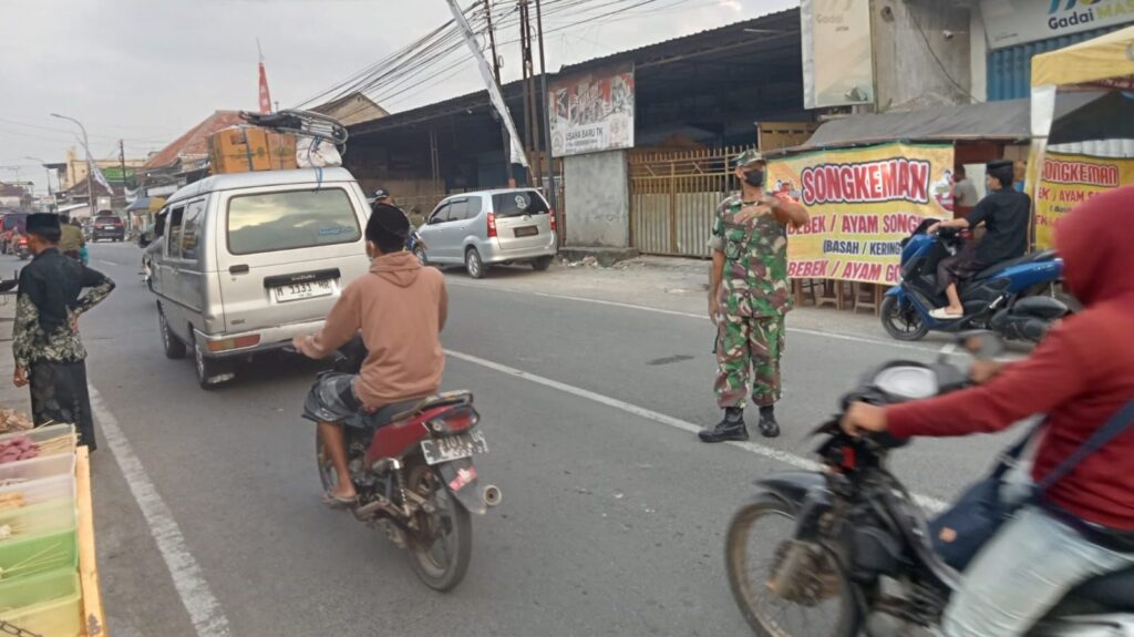 Sampang — Di tengah hiruk-pikuk aktivitas Pasar Omben yang dipadati warga, tampak sosok Babinsa Koramil 0828/03 Omben, Serda Suyitno, bersama anggota Banser sigap membantu pengaturan lalu lintas di Desa Omben, Kecamatan Omben, Kabupaten Sampang. Kegiatan ini dilakukan sebagai bentuk kepedulian terhadap kelancaran arus kendaraan serta keselamatan masyarakat yang beraktivitas di kawasan pasar. Dengan penuh semangat dan humanis, Serda Suyitno bersama Banser mengatur arus lalu lintas, membantu penyeberangan warga, serta mengurai kepadatan yang kerap terjadi di jam-jam sibuk.