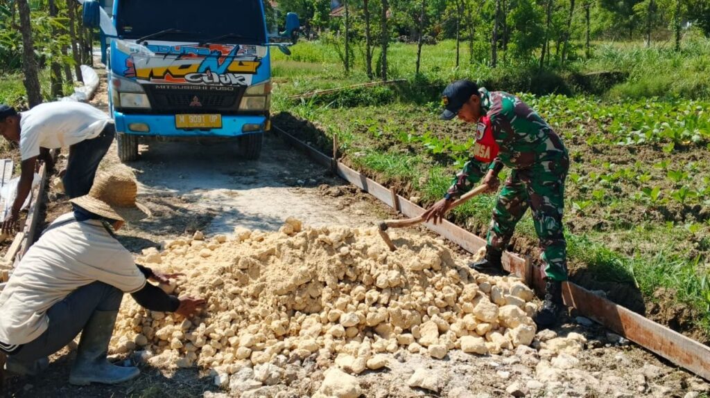 Sampang –  Dalam semangat kebersamaan dan kepedulian terhadap lingkungan, Babinsa Posramil 0828/13 Pangarengan, Koptu Darwis, melaksanakan kegiatan karya bakti bersama warga di Desa Pecanggaan, Kecamatan Pangarengan, Kabupaten Sampang. Kegiatan ini difokuskan pada perbaikan jalan poros desa yang selama ini menjadi akses utama masyarakat dalam menjalankan aktivitas sehari-hari. Dengan penuh semangat gotong royong, Babinsa dan warga bahu-membahu memperbaiki kondisi jalan agar lebih layak dan aman dilalui.