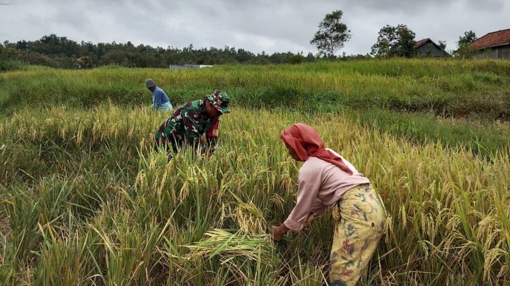 Sampang – Wujud nyata kepedulian terhadap ketahanan pangan nasional kembali ditunjukkan oleh Babinsa Koramil 0828/10 Kedungdung, Serda Parminto, yang turun langsung membantu para petani dalam kegiatan panen padi di Desa Pajeroan, Kecamatan Kedungdung, Kabupaten Sampang. Dengan penuh semangat kebersamaan, Serda Parminto bergabung bersama petani di sawah, ikut memanen padi yang telah memasuki masa panen. Kehadirannya tidak hanya memberikan bantuan tenaga, tetapi juga menjadi motivasi tersendiri bagi para petani untuk terus meningkatkan produktivitas pertanian.